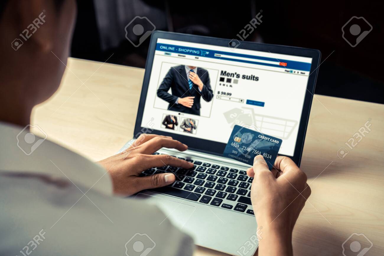 Young Man Use Credit Card For Shopping Payment Online On Laptop Stock Photo Picture And Royalty Free Image Image 140168734